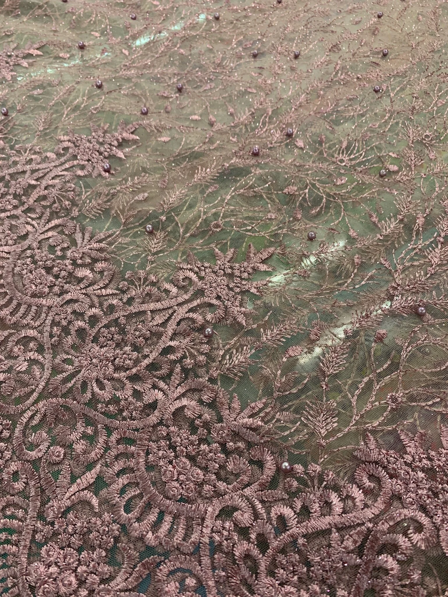 Embroidery fabric. Beautiful for gowns and fashion. Embroidered border. Approximately 52in wide.